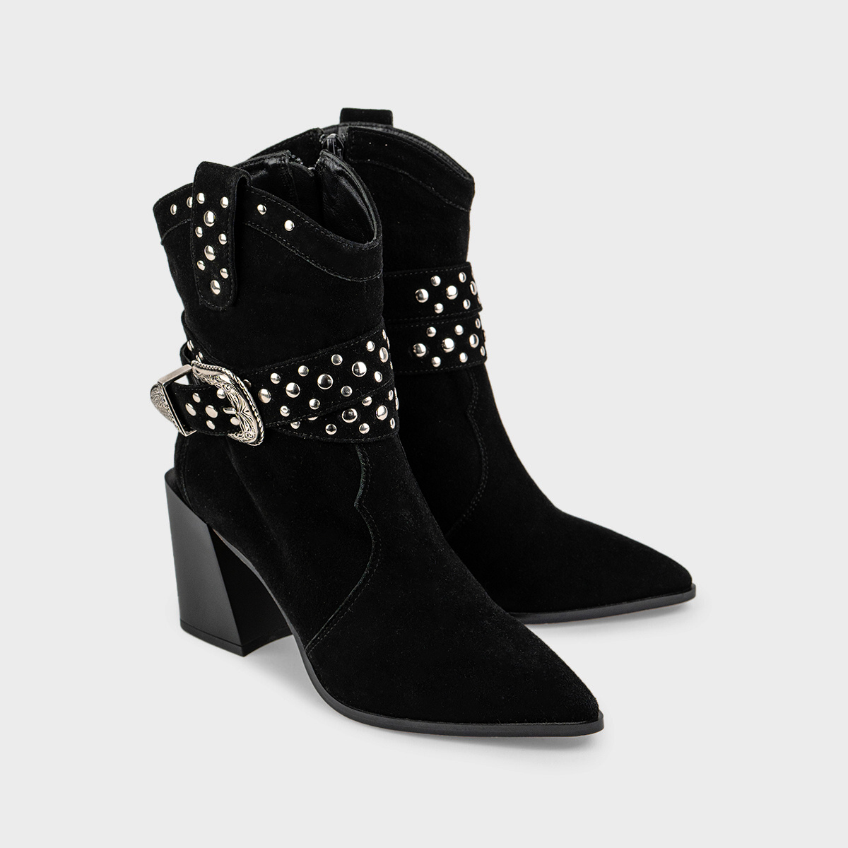 bota cowboy mujer, botas altas con hebilla western, bota gamuza negra mujer, bota de piel latte, botas con tacón 10 cm, botas estilo vaquero elegantes