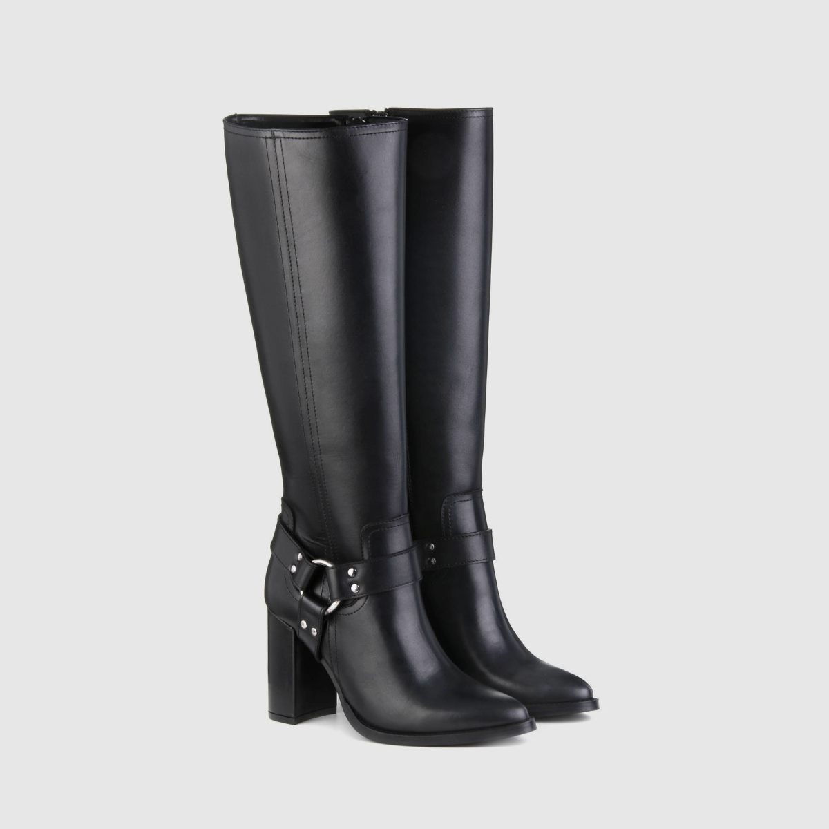 Descubre la bota alta ALBA en negro, una pieza versátil que no puede faltar en tu colección de calzado. Con su caña elevada, punta almendrada y tacón de 9 cm, estiliza tu figura mientras proyecta sofisticación. La correa desmontable añade un toque de versatilidad, permitiéndote adaptar el diseño según tu estilo. Confeccionada en piel premium de alta calidad, ofrece durabilidad y confort en cada paso. Combínala con vestidos fluidos, faldas midi o pantalones ceñidos para crear looks impactantes durante la temporada otoño-invierno.