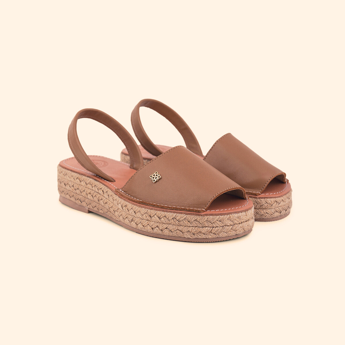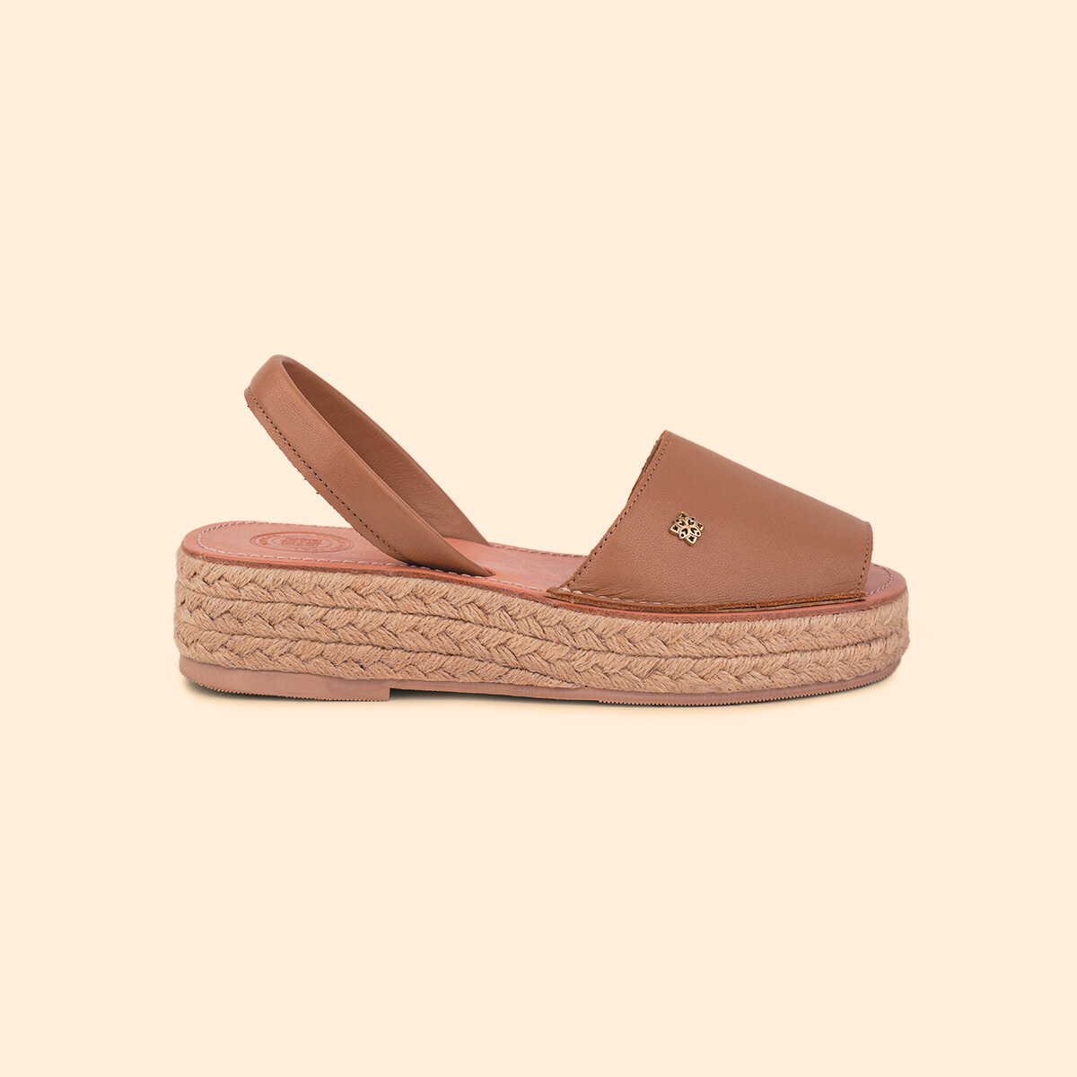 Nuestro Best Seller la sandalia avarca up para dama está montada en una plataforma de 4 cm de altura con base ancha para mayor estabilidad, forrada de yute natural.