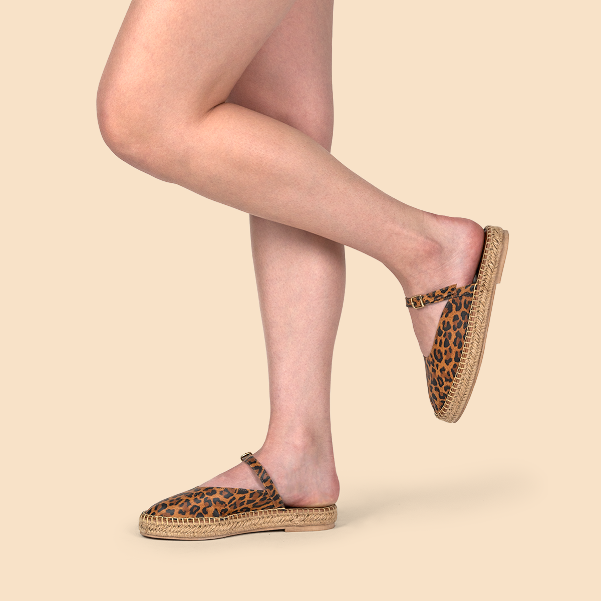 Espadrille tipo sueco destalonado con correa que puedes ajustar a tu gusto. Utilizamos corte en piel con forro de piel y plantilla 100% de cuero natural con protección antibacterial y anti-olor. Tejidos a mano a la suela forrada de yute natural.