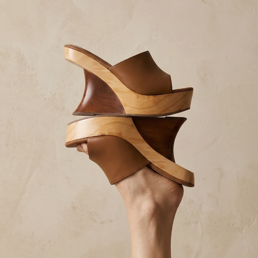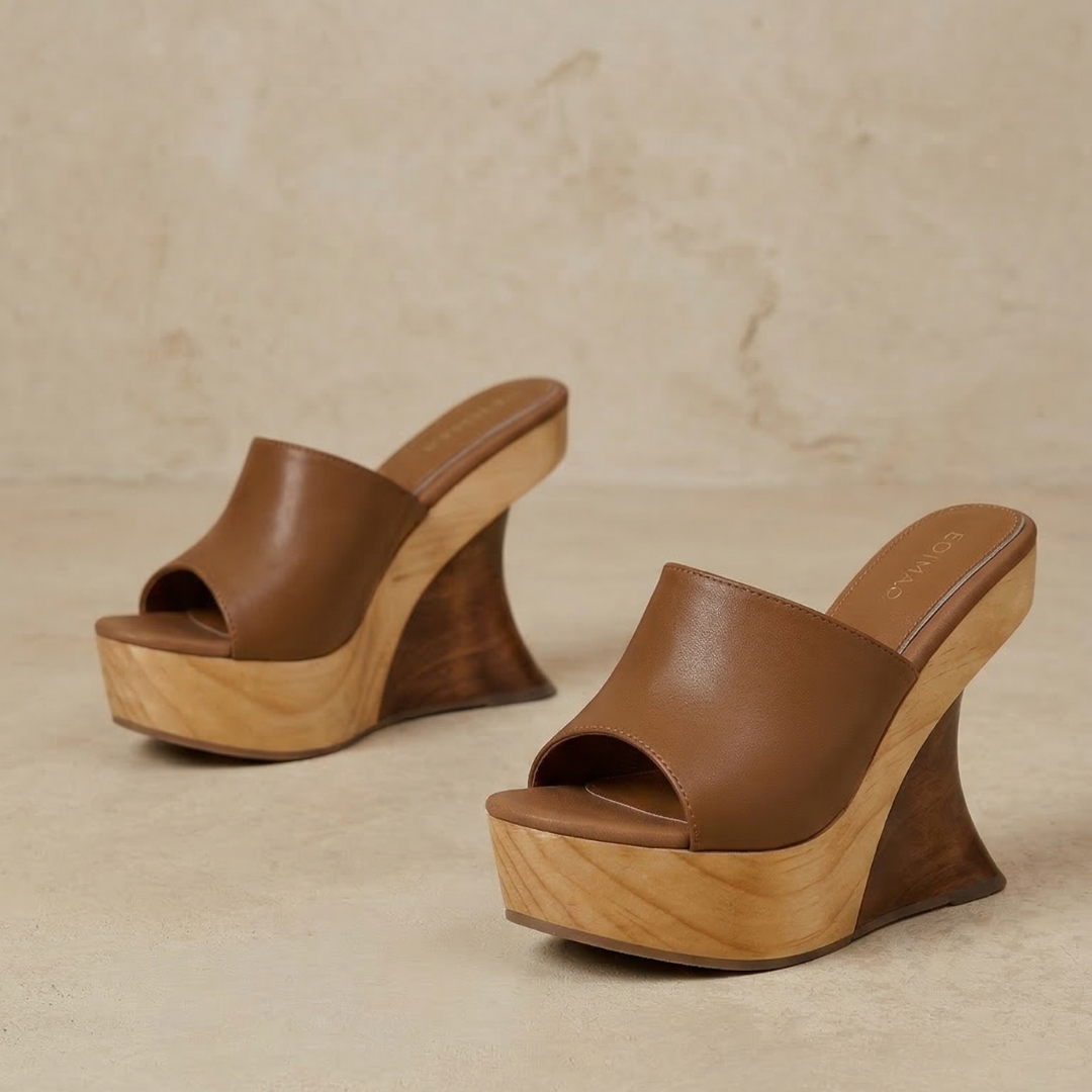Con una plataforma de madera de 13 cm, este diseño está hecho para mujeres que no pasan desapercibidas.