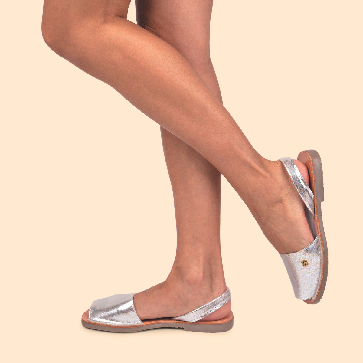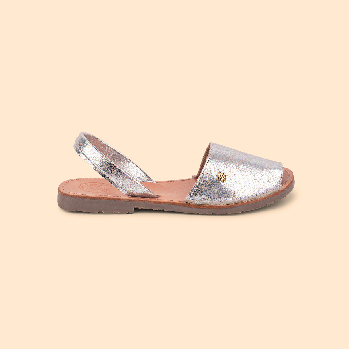 La sandalia para dama Avarca Clásica en piel es un modelo atemporal. Utilizamos las pieles más suaves para mayor confort, perfectas para la temporada en piel plata craquelada con plantilla 100% cuero con protección anti-bacterial y anti-olor.