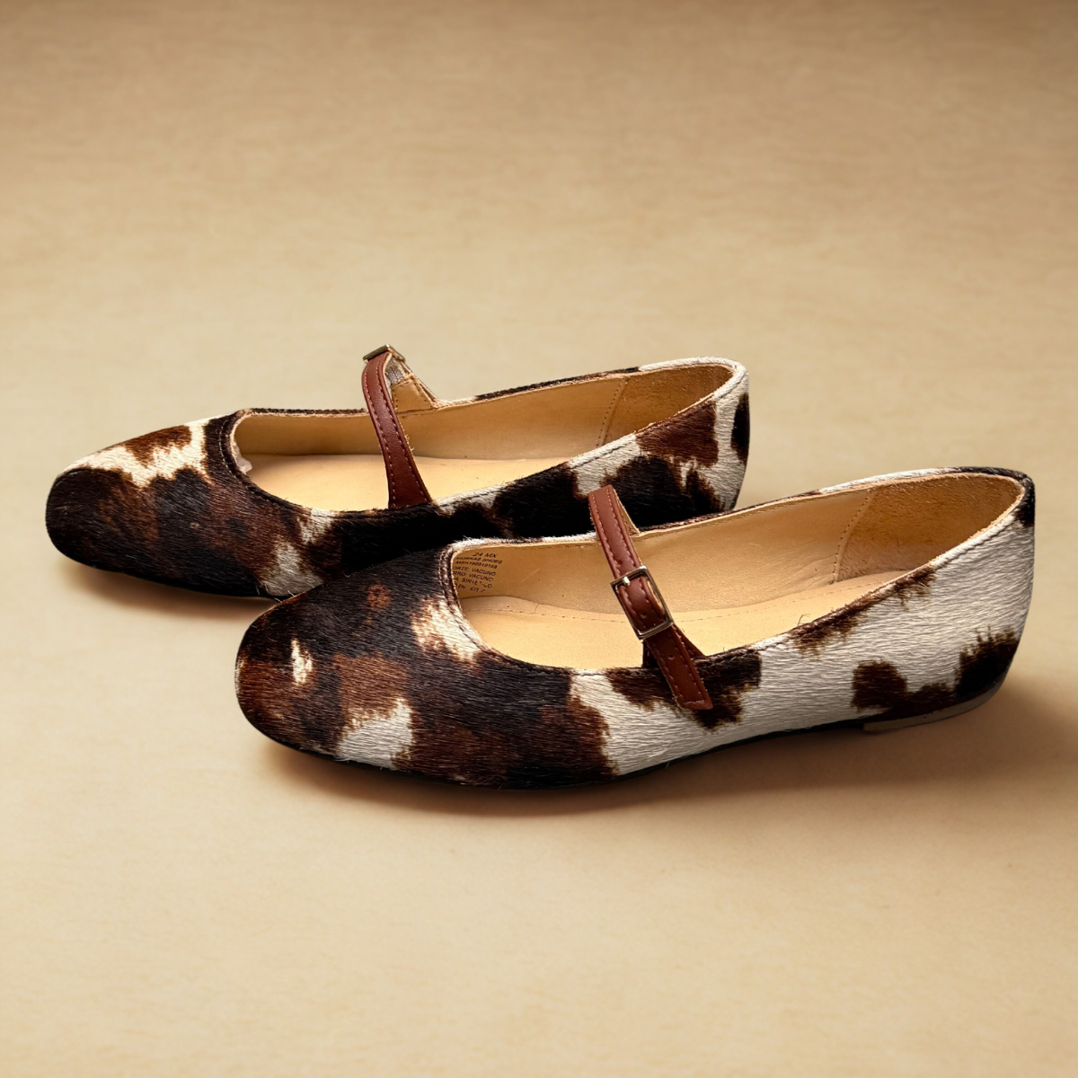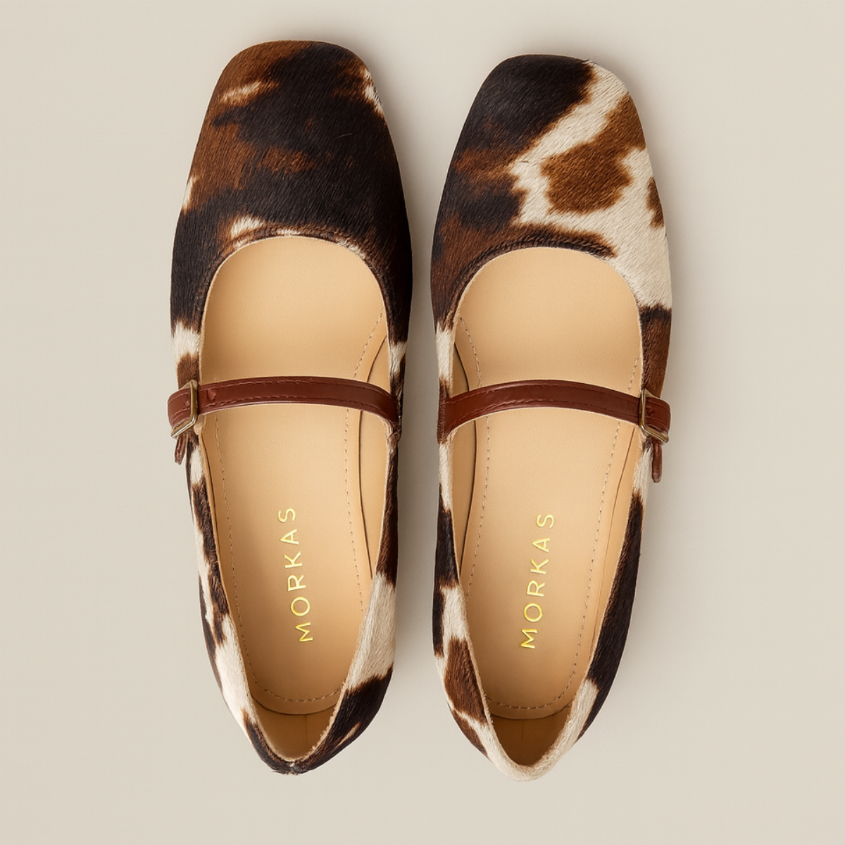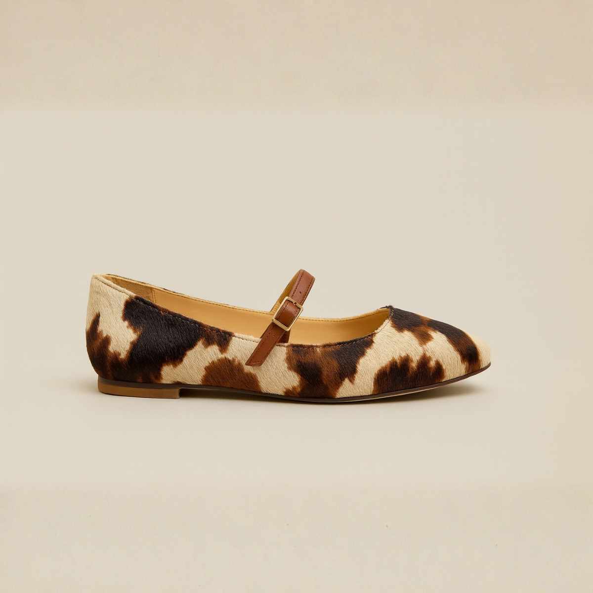 Explora la naturaleza desde tus pies. Estas bailarinas en piel pelo con estampado animal te conectan con lo esencial: comodidad, estilo y autenticidad.