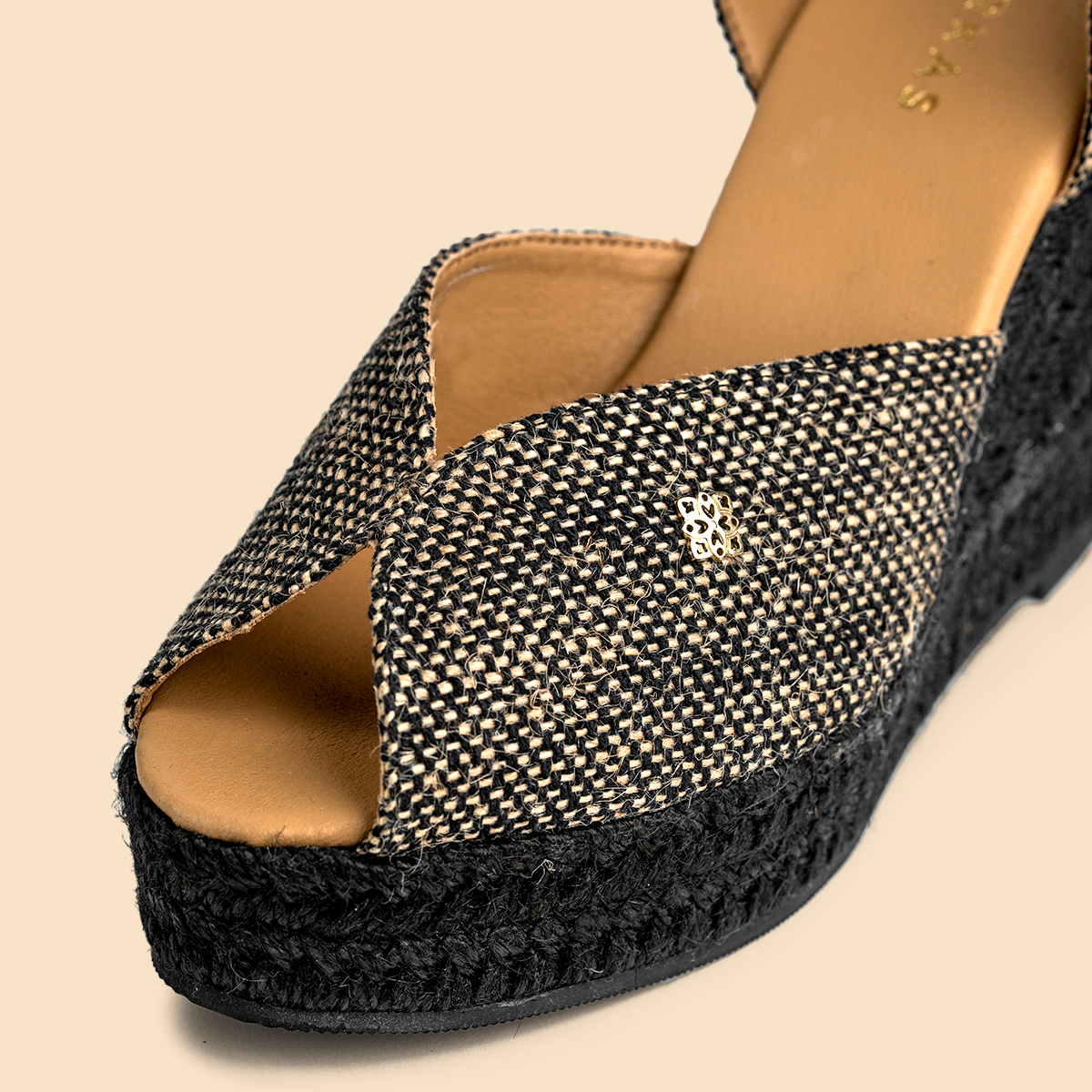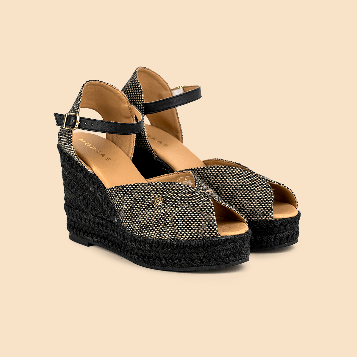 Las alpargatas abiertas con pulsera y soporte en el talón están diseñadas en textil de colores básicos para la temporada. Diseñadas con una plantilla comfort que te mantendrá super cómoda. Montadas en una suela de 10 cm de alto y forradas en yute natural.